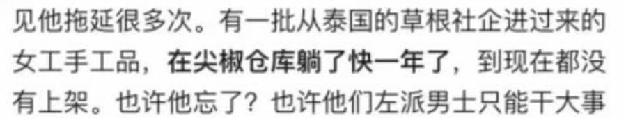 需要提及一个事情,这件事尤其暴露某些人的立场。我关注到打工诗人周启早的诗歌,想帮他代卖诗集,传播他的诗歌,其实也就是弘扬尖椒部落的理念。所以我拍了照,制作了宝贝详情,但遗憾的是因为许可证的原因没有上架成功。后来,我给诗人周启早的书打包、发货与统计情况,同事们都看在眼里,我也跟他们分享了上架失败的事情,希望她们给一些建议。结果,一位同事看到后说:妳做这些,能给尖椒带来什么?我心里瞬间一万只草泥马飘过。帮助打工诗人传播她们的诗歌,不是我们最基本的责任和义务吗?投资人给我们机构资金,不是让我们去传播工人文化,难道是让我们去赚钱的吗?尖椒部落充斥着这种毫无阶级意识,毫无劳工意识的混混,违法解雇员工也就不奇怪了。