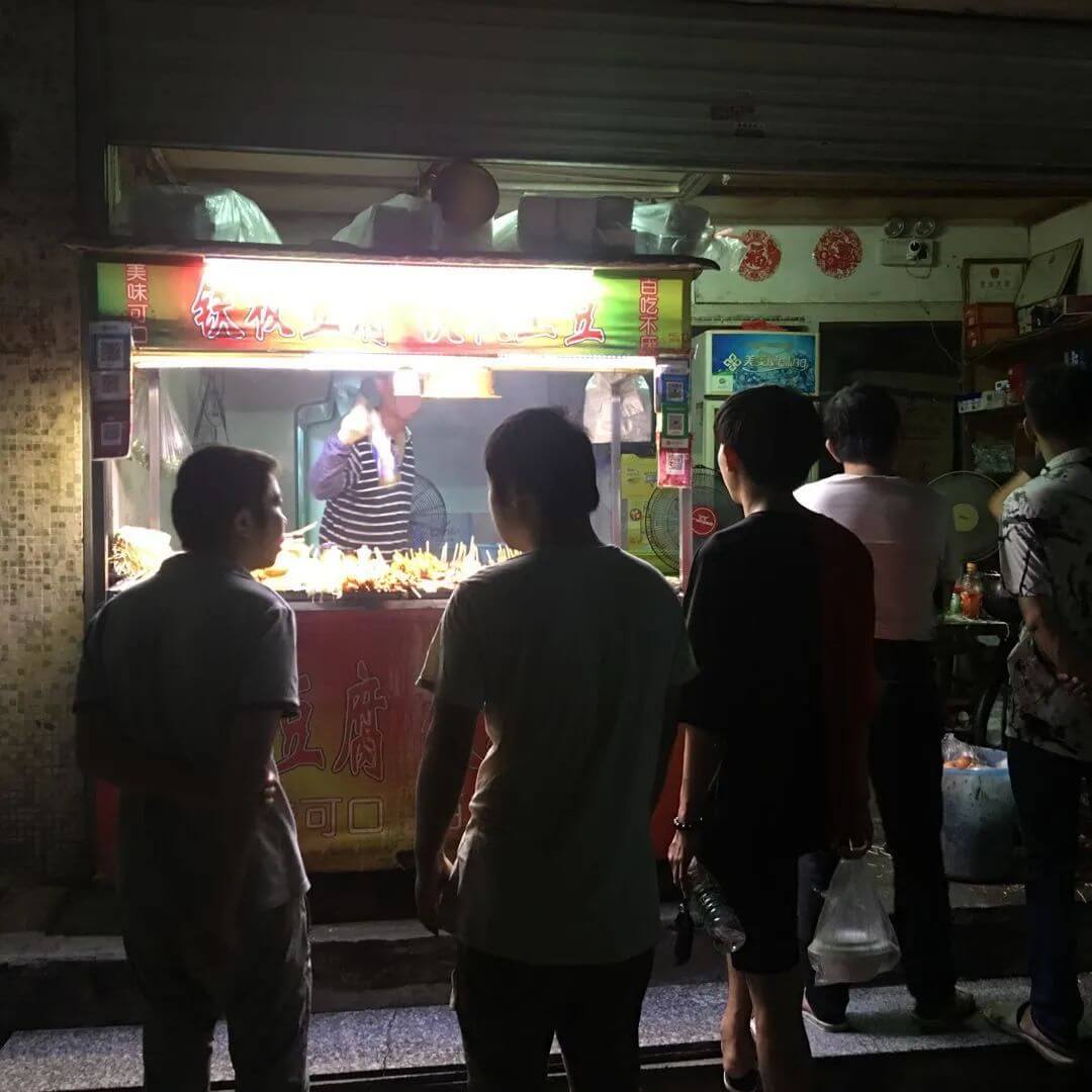 点好烧烤的人会先去拿上一瓶珠江啤酒,就坐在城中村路的中间被临时架起的桌子旁,等到老板喊「好啦」,就开始慢慢享用。有人刚从网吧走出,眼神涣散;有的人刚做完日结,目光疲倦。无论食客有着怎样的过往,而此刻的味蕾都发生着同样的化学反应。