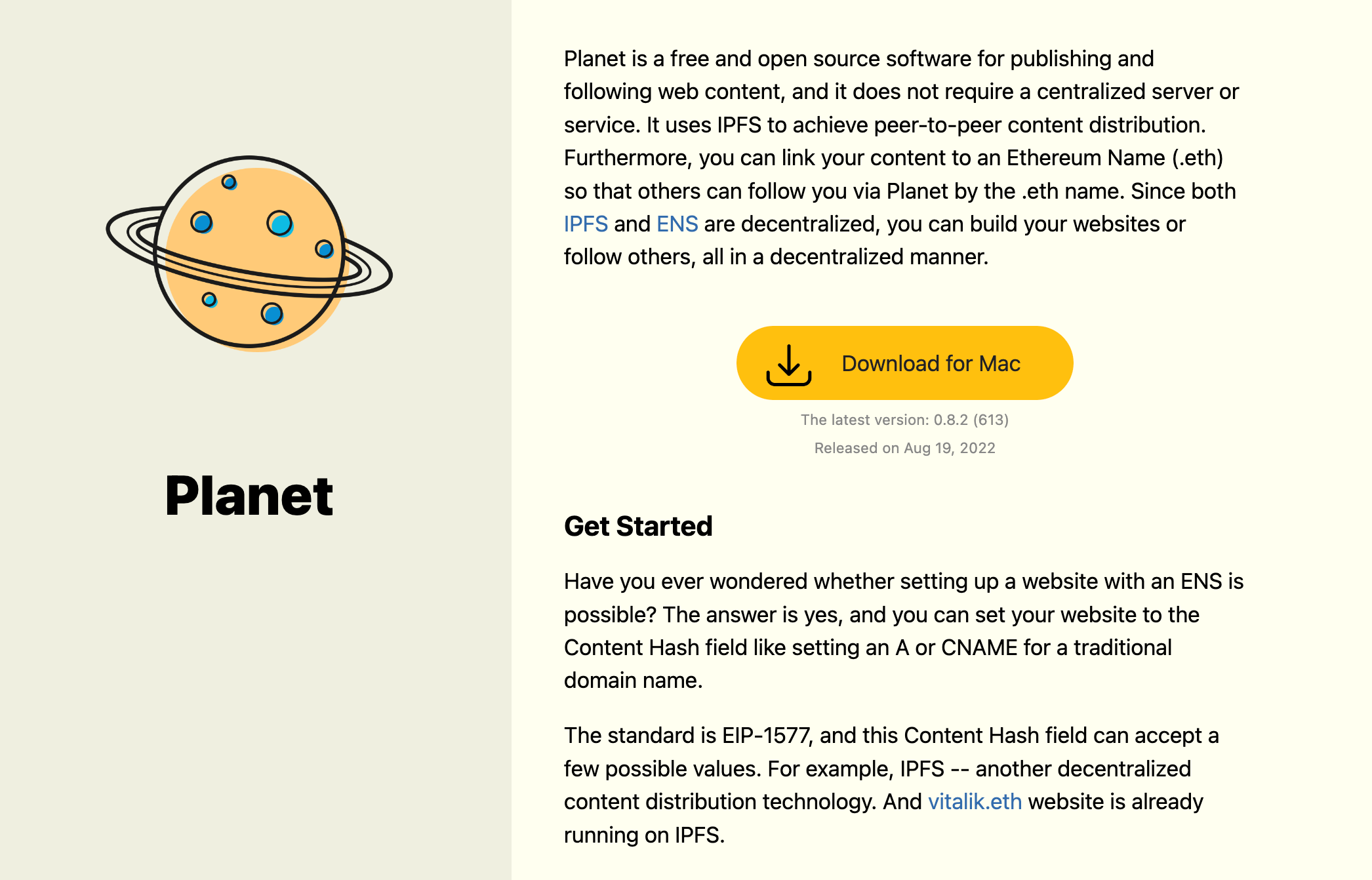 IPFS作为分布式网路技术,并且可实现用户自己托管自己的数据,这让Livid看到了光亮,遂有了开发Planet的想法。西元2022年07月11日,Livid在v2ex发帖,「如果你之前用过 IPFS 或者 ENS,你可能会想要试试我们在做的这个App」,Planet正式上线。